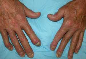 شدیداً گرفتار است شدّت می یابد و زمانی که ضایعات پوستی بهبود می یابند آرتریت هم رو به بهبودی می رود