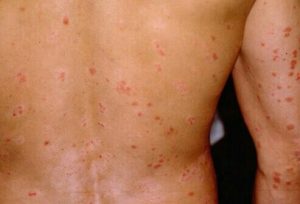 در پسوریازیس نوع «اریترودرمیک» تقریباً تمام بدن پوشیده از زخم های ریز می شود.